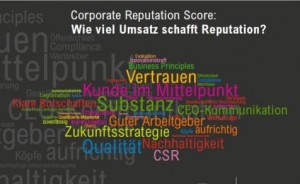 Der CRS – Corporate Reputation Score Eine Studie der BIESALSKI & COMPANY, sowie der Serviceplan Corporate Reputation hat herausgefunden, dass rund 1/4 des Umsatzes von der Reputation, dem Image beinflusst werden. In der Studie wurde 10 namhafte DAX-Unternehmen untersucht. Hier geht es zu der Studie… Quelle: BIESALSKI & COMPANY, Serviceplan Corporate Reputation